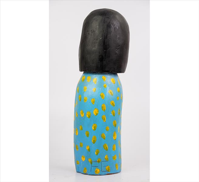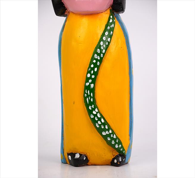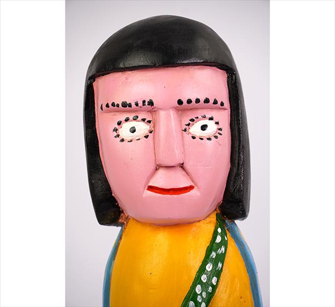 FRANCISCO GRACIANO, Escultura de madeira entalhada e policromada, representando figura estilizada, estilo Arte Popular, assinado sob a base. Alt. 38 x 11 x 12cm.