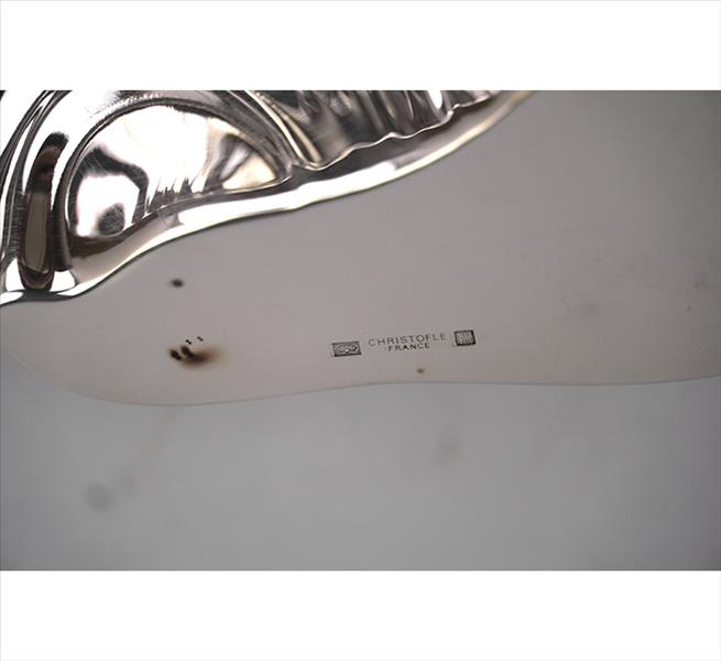 CHRISTOFLE, Centro de mesa de metal espessurado à prata, representando rocalha, marca da manufatura sob a base. Alt. 05 x 26 x 20cm. França, séc. XX