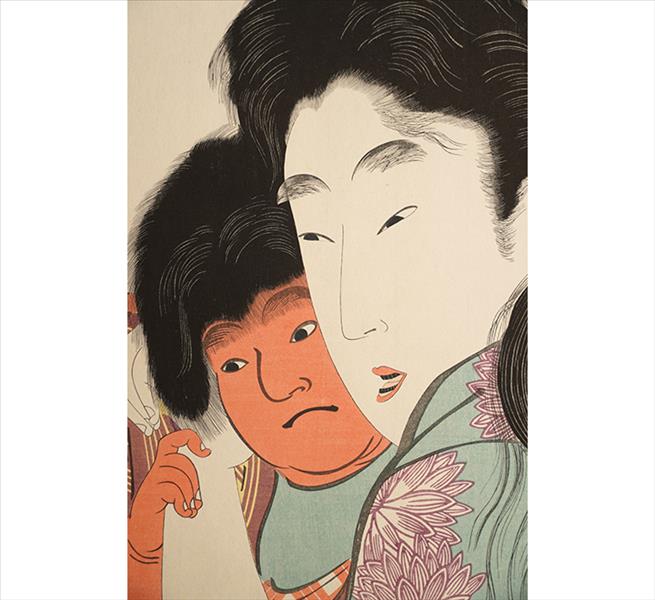 KITAGAWA UTAMARO, Yamauba e Kimtaro, Xilogravura Ukiyo-e, assinada. 38 x 25cm. Japão, séc. XX (sem moldura)