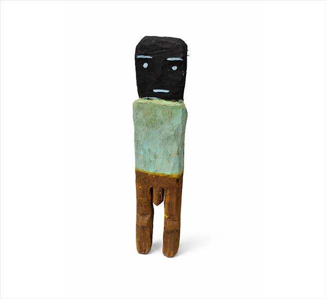 GERALDO CABOETA, Figura, escultura de madeira entalhada e policromada, estilo arte popular, assinada. Alt. 29cm