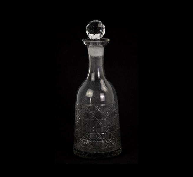 Licoreira de cristal com detalhes lapidados. Alt. 29 x 11cm. Europa Séc. XX