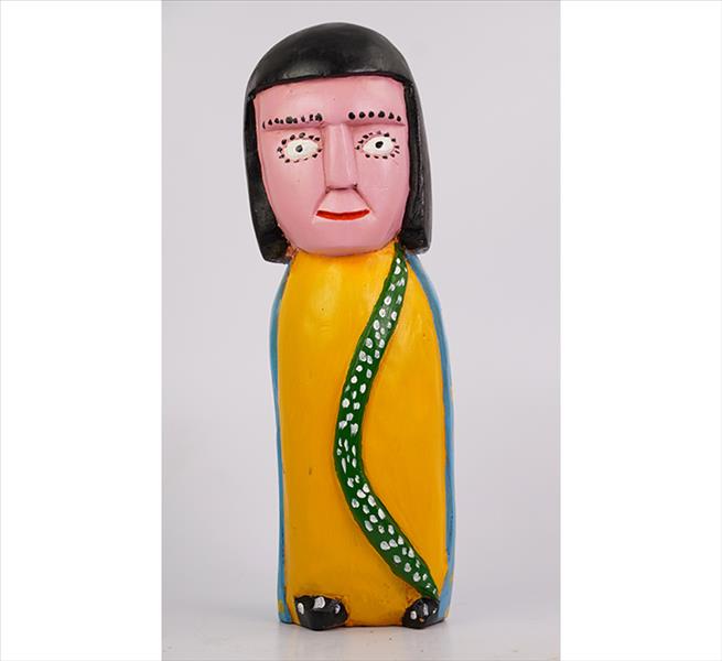 FRANCISCO GRACIANO, Escultura de madeira entalhada e policromada, representando figura estilizada, estilo Arte Popular, assinado sob a base. Alt. 38 x 11 x 12cm.